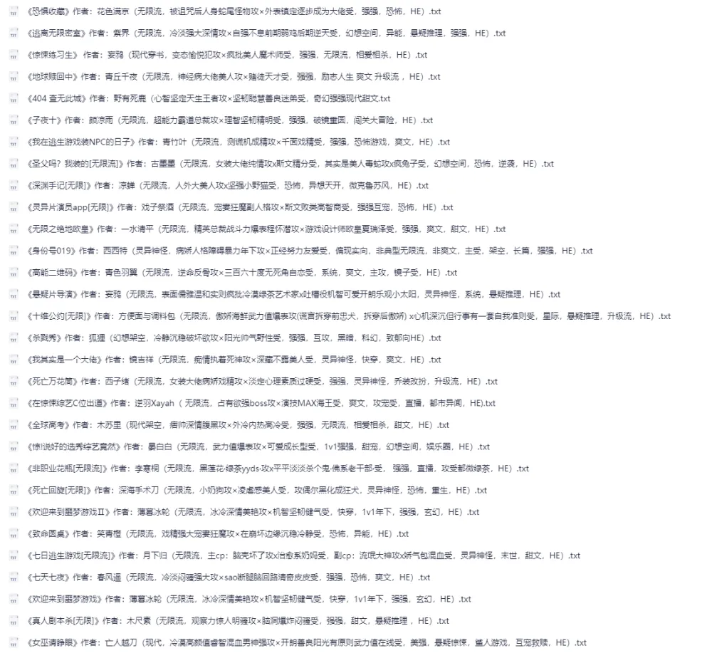 《无限流小说》最新整理 102部仙品合集[txt]-夸克网盘资源下载地址由网盘用户[敏捷*金鱼]分享,包含txt等格式共计52个文件,文件大小为100.46MB,分享时间2025-05-01,此夸克网盘资源由搜课100网盘搜索引擎收集整理。...