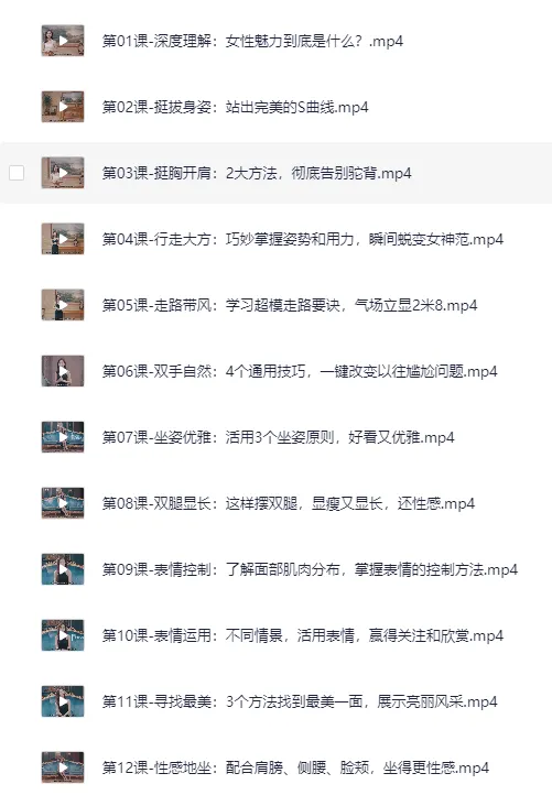 亚洲小姐出镜亲授: 每个女人都能学会的魅力技巧(完结)【夸克网盘】-夸克网盘资源下载地址由网盘用户[欣喜*狂的绿豆]分享,包含mp4等格式共计27个文件,文件大小为1.01GB,分享时间2025-09-08,此夸克网盘资源由搜课100网盘搜索引擎收集整理。...