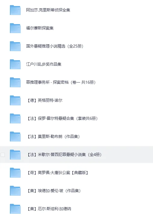 《经典推理小说大集合》上百本推理名著[pdf]-夸克网盘资源下载地址由网盘用户[浮*]分享,包含azw3,epub,mobi,txt,url,png,jpg,pdf等格式共计275个文件,文件大小为1.31GB,分享时间2024-10-07,此夸克网盘资源由搜课100网盘搜索引擎收集整理。...