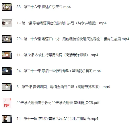 40天学会粤语 从零基础到进阶开口说粤语!(广州话+香港话)16.61GB