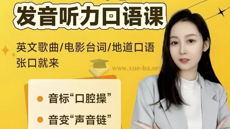 小E老师《英语课程合集 (音标+发音+实例+配套资料) 》。 小E老师具有英语专业八级、高级口译资质及全国翻译大赛一等奖经历。课程整合了系统性英语发音训练与实用场景教学,覆盖音标、发音、实例及配套资源,帮助学生突破瓶颈,提升英语水平。 ├── 1.完美音标口腔操(49节) ├── 2.声音链-音变本质课 25个音变和语流【25节】 ├── 3.单字母-薄弱基础课(26节) ├── 4.地道发音课+唱歌变音讲解【80节】 ├── 5.电影实例【100节】 ├── 6.小E老师英语讲义资料包...