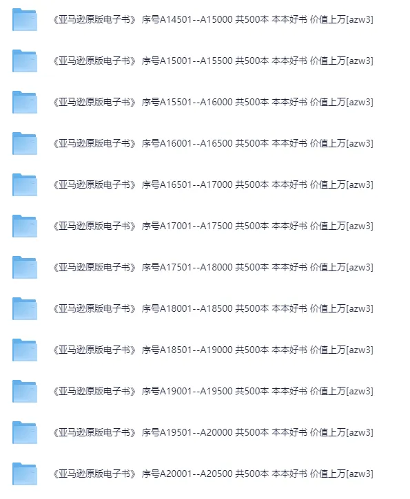 《亚马逊原版电子书》 序号A14501--A15000 共500本 本本好书 价值上万[azw3]525.7MB