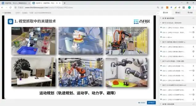 ROS机械臂开发:从入门到实战 - 带课件。 为什么要学习这门课程?如今全球工业机器人市场每年价值高达480亿美元,对机器人技术的需求也正快速增长。国内虽然已有800多家涉及机器人生产的企业,但由于起步晚,大多数公司受限于核心技术的突破,也是机器人工程师急需重点攻克的难题。 ROS的普及对解决各家公司机械臂通信协议不一样的问题具有重大意义。现众多知名公司的机器人平台(或产品)均支持ROS系统,熟练掌握ROS系统的原理与操作已经成为机械臂开发的重要一环。通过系统的教程能够少走很多弯路,更高效地学习机械臂原理,同时理论结合实战,可将所学直接应用到科研实践与工作中。 ├── 第1节 ROS的过去、现…...