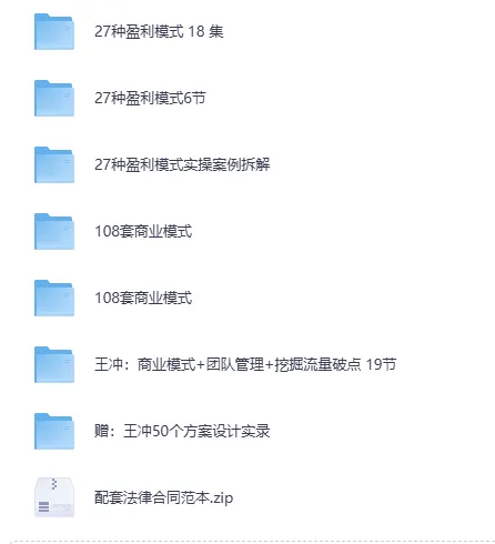 王冲-27种盈利模式课程合集【课程】【视频,文档】86.97GB