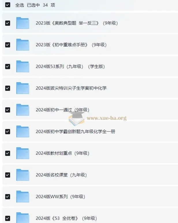 【学习资料】九年级教辅资源汇总 (2024版)【夸克网盘】-夸克网盘资源下载地址由网盘用户[欣喜*狂的绿豆]分享,包含pdf等格式共计78个文件,文件大小为6.42GB,分享时间2025-09-08,此夸克网盘资源由搜课100网盘搜索引擎收集整理。...