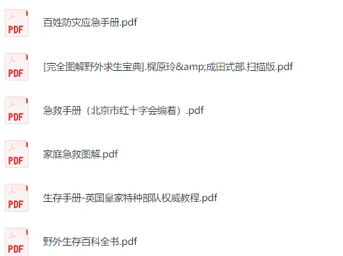 一些野外求生手册集合,包括完全图解野外求生宝典、急救手册、野外生存百科全书、生存手册、百姓防灾应急手册和家庭急救图解等,和资源,有需要的可以保存学习。