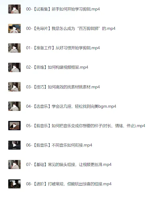 B站收费课程《人人都能听懂的剪辑课》:百万剪辑师实战教学,零基础轻松掌握剪辑技巧17G-夸克网盘资源下载地址由网盘用户[心满*足的青松]分享,包含docx,dmg,m4a,wav,mp3,mp4,mov,zip等格式共计96个文件,文件大小为12.37GB,分享时间2025-04-16,此夸克网盘资源由搜课100网盘搜索引擎收集整理。...