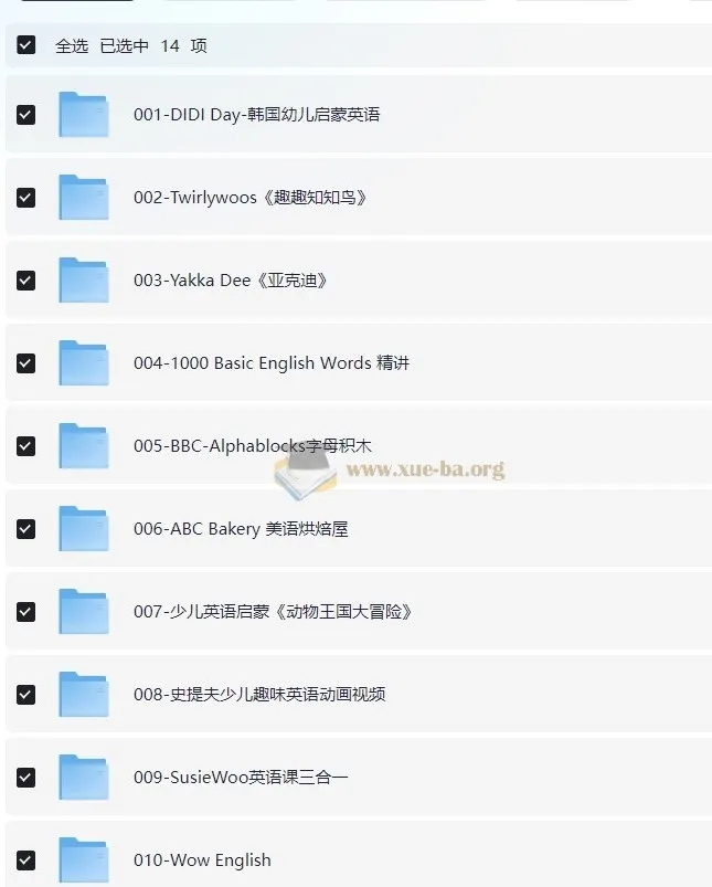 少儿英语科普启蒙《If I were an Animal 假如我是一只动物(中英对照版)》。 以儿童视角讲述52种动物从出生到成长的完整过程,每集围绕一种动物展开(如小鹿、獴、犀鸟等),画面温馨且富有家庭感,既可收获科普知识,也能在潜移默化中学习英语,适合低龄儿童观看。 ├── 01 - 【英文合集01】假如我是大白熊.狐狸.蜻蜓或蝴蝶.非洲猎豹【英语 中英双语字幕】.mp4 ├── 02 - 01-1如果我是大白熊犬【国语童音 中文字幕】.mp4 ├── 03 - 01-2.如果我是狐狸【国语童音 中文字幕】.mp4 ├── 04 - 01-3.如果我是蜻蜓或蝴蝶【国语童音 中文字幕】.m…...
