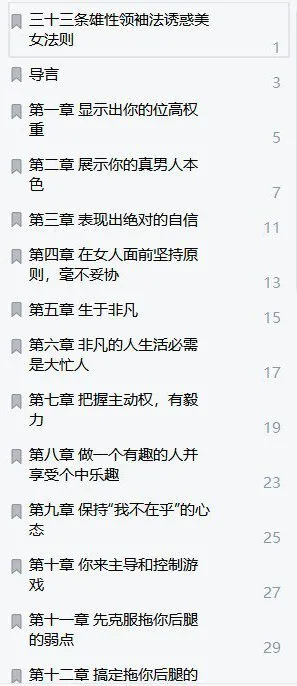 描述:《三十三条雄性领袖法则》聚焦现代男性自我提升与两性关系建设,通过心理学、社交技巧与情感智慧的系统梳理,帮助读者塑造自信人格、优化沟通方式,建立基于尊重与吸引力的良性互动模式。内容强调内在成长与外在魅力的平衡发展。