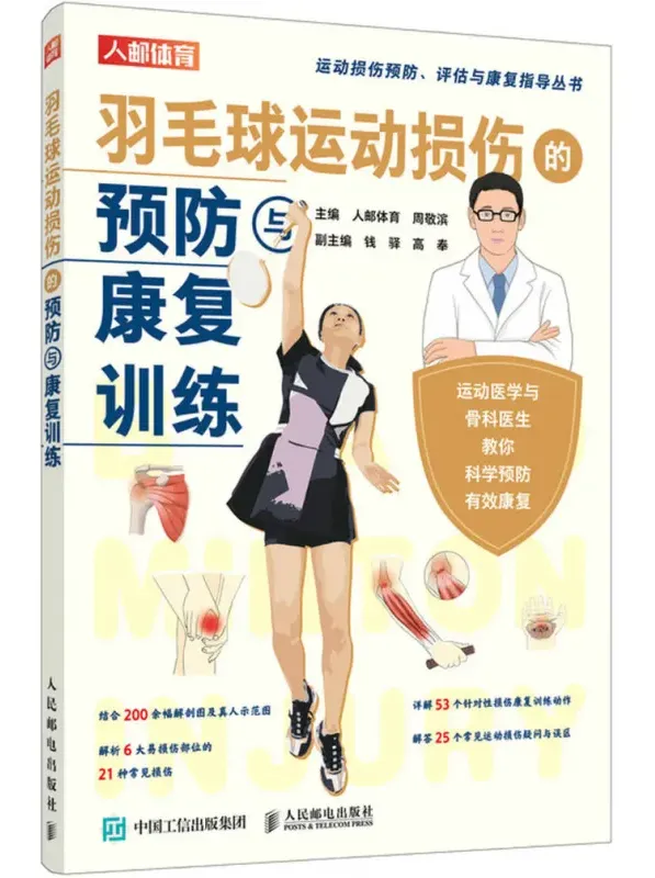 羽毛球运动损伤的预防与康复训练 介绍了运动损伤的基础知识,接着分析了羽毛球运动的特点、技术动作和易损伤部位,然后对羽毛球运动不同部位常见损伤的症状、诱因、预防指导、处理指导、康复中后期推荐训练计划和重返运动的标志进行了详细讲解,并采用真人示范图解的方式,对康复训练动作进行了展示。之后,讲解了关于羽毛球运动损伤的常见疑问与误区。