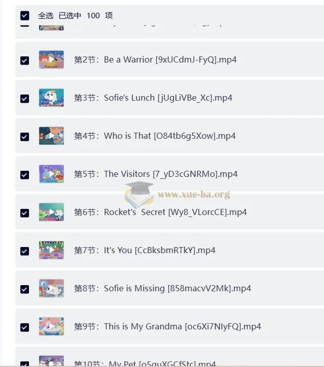 100节英语动画点亮儿童英语启蒙。 融合趣味故事与互动学习,专为幼儿和小学生设计! 生动动画激发兴趣,科学课程提升听说能力,让孩子爱上英语,轻松开口说。 适合3-12岁,寓教于乐,家长放心之选! ├── 第1节:Say Hello [7gxKXu5MQAg].mp4 ├── 第2节:Be a Warrior [9xUCdmJ-FyQ].mp4 ├── 第3节:Sofie's Lunch [jUgLiVBe_Xc].mp4 ├── 第4节:Who is That [O84tb6g5Xow].mp4 ├── 第5节:The Visitors [7_yD3cGNRMo].mp4 ├── 第…...