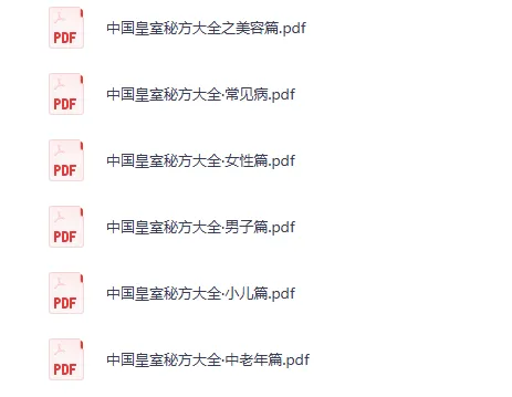 《中国皇室秘方大全全4册》【PDF】[7.12M]-夸克网盘资源下载地址由网盘用户[夸父*164]分享,包含pdf等格式共计4个文件,文件大小为7.13MB,分享时间2025-07-10,此夸克网盘资源由搜课100网盘搜索引擎收集整理。...