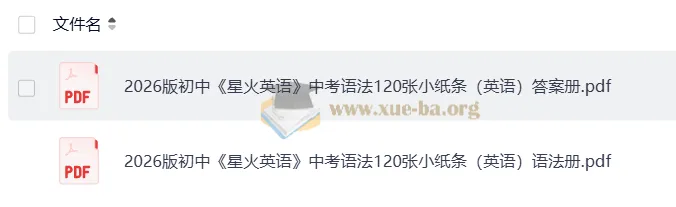 2026初中星火英语 中考语法120张小纸条(英语)-百度网盘资源下载地址由网盘用户[gua****8805]分享,包含pdf等格式共计2个文件,文件大小为114.47MB,分享时间2025-09-10,此百度网盘资源由搜课100网盘搜索引擎收集整理。...