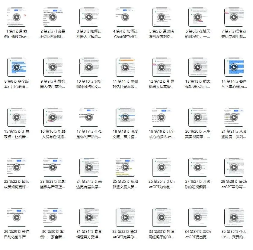 ChatGPT运营秘诀与变现攻略(100节课)目录:
