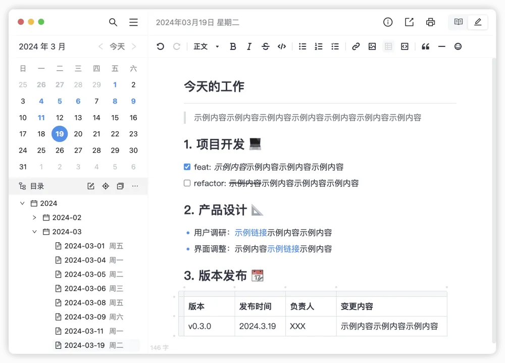 日记支持表格可视化编辑、本地图片插入/粘贴