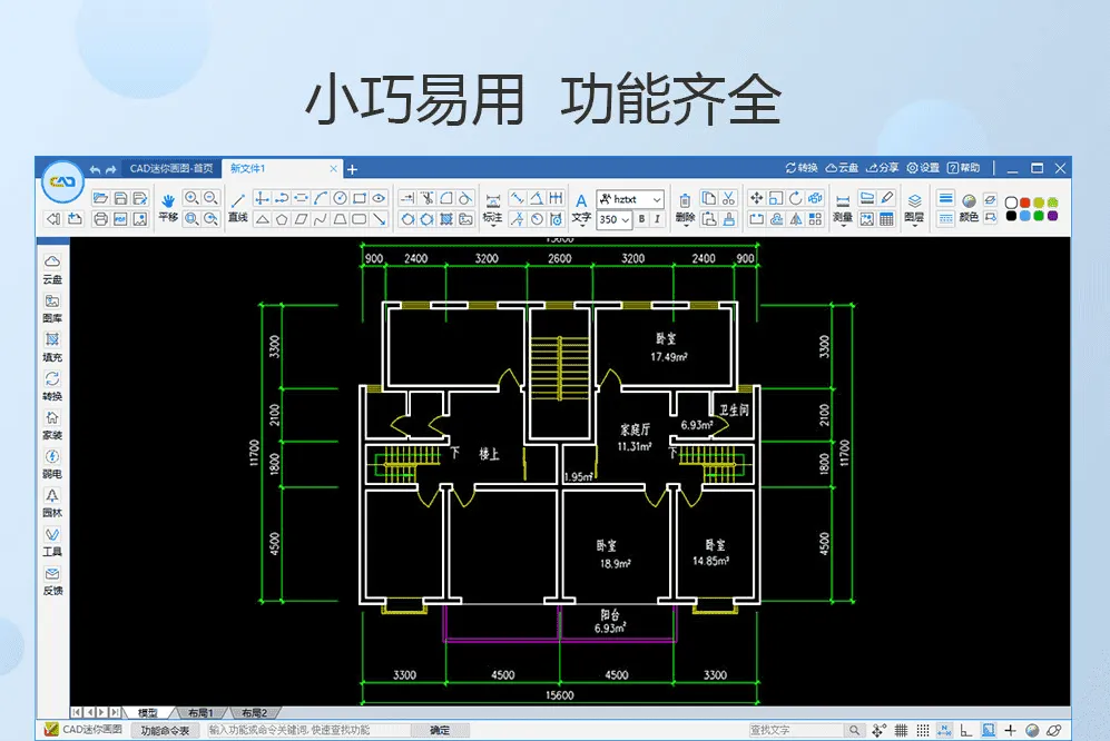 经典的轻量化CAD快速制图工具,软件小安装速度快,操作简单,完全脱离AutoCAD,画图功能齐全,独有的特色功能,可大大提高制图效率。超级图库,应有尽有,包含建筑、室内、结构、电气、给排水、园林、机械等各个专业图库;转换功能,大大提高图纸转换效率,包括天正转换、PDF转CAD、批量转PDF、批量转图片和批量转版本等功能;内嵌家装、弱电、园林等专业模块,制图效率大大提高;标注功能强大,增加箭头引注、引出标注、剖切符号、图名标注等专业功能,填充图案、图形填色和测量面积支持智能识别图形边界,功能更好用;打印、导PDF和图片增加识别图框批量打印和导出,效率倍增。还包括云字体、智能3D等等黑科技,让你感受非同寻常的设计体验。免费赠送100M云盘,图纸安全同步,轻松分享。软件简单易学,是Windows平台下必备的CAD画图工具。部分VIP功能需收费。