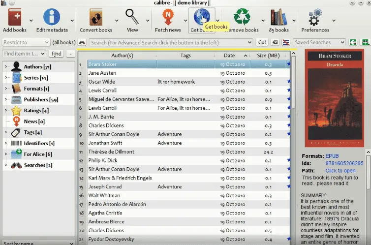Calibre中文版拥有完整的电子图书馆,包括图书馆管理,格式转换,新闻,材料转换为电子书。