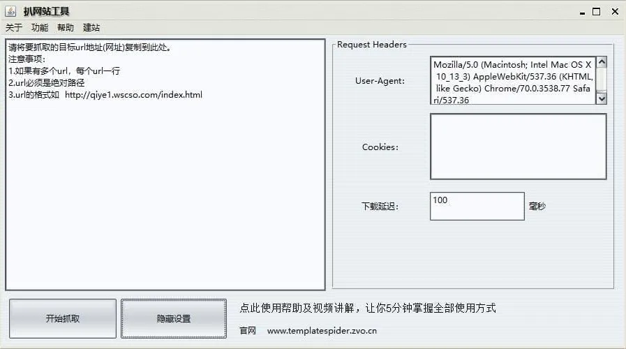 比如,当您抓取的目标网页需要登陆时,你可以用浏览器登陆目标网页,拿到其Cookies,将其填入此处即可。
