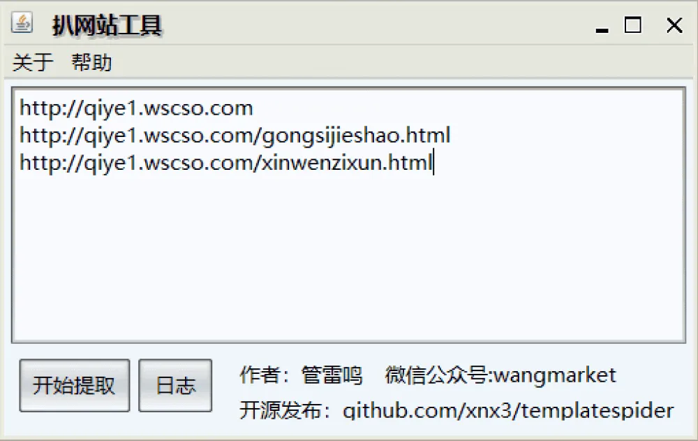 设置好后,点击左下角的“开始提取”按钮,便开始了自动扒这几个设置好的页面。软件左下方有两个按钮: 开始抓取 、 更多设置
