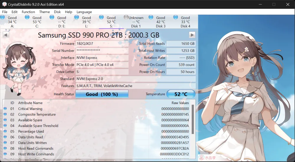 CrystalDiskInfo,免费专业硬盘检测工具,硬盘健康状态信息检测工具。支持检测机械硬盘及固态硬盘信息,采用S.M.A.R.T.技术检测分析读取磁盘的详细信息,包含硬盘温度,固件、序列号、驱动器接口等。CrystalDiskInfo是由日本人hiyohiyo个人开发的小工具,能全面详细直观的检查硬盘的健康状态及各种参数。